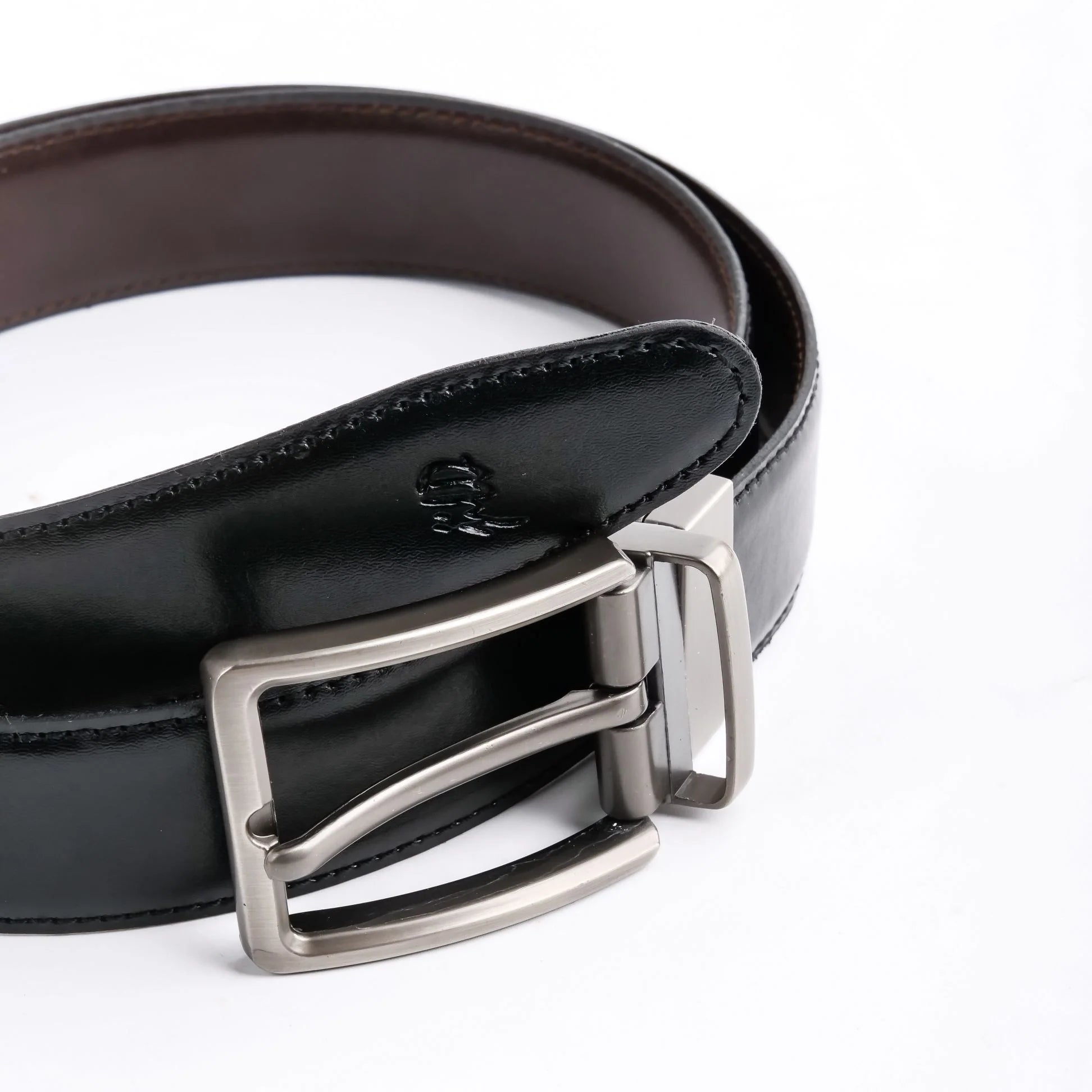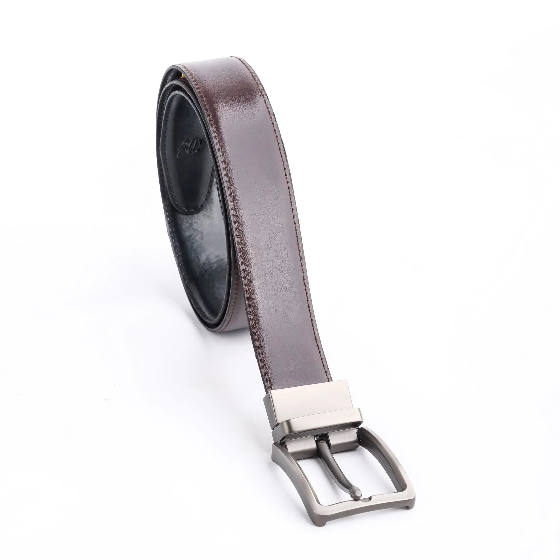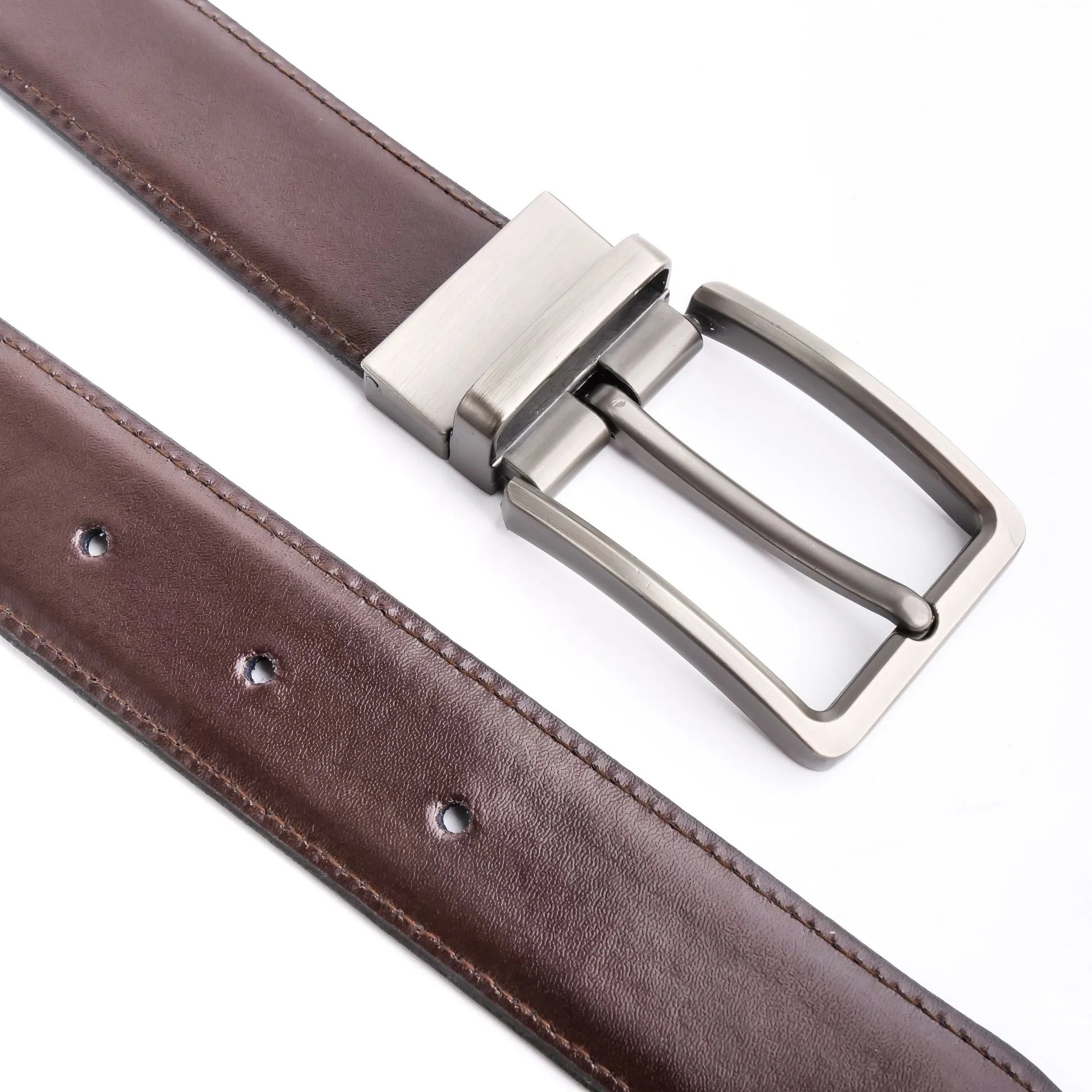 Double-Sided Reversible Men’s Leather Belt – Black & Dark Brown