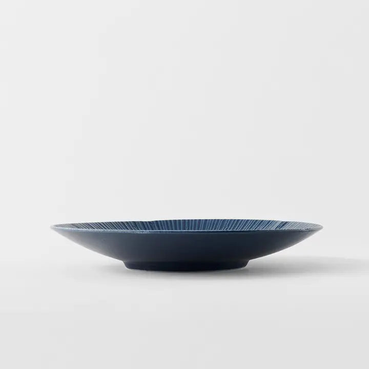 Elevate your dining experience with the Ice Drift Sapphire Dinner Plate, a handcrafted porcelain piece featuring a delicate linear pattern set against a deep sapphire blue glaze. Its artisanal finish brings both elegance and uniqueness to your table, making it perfect for special occasions or everyday dining.
