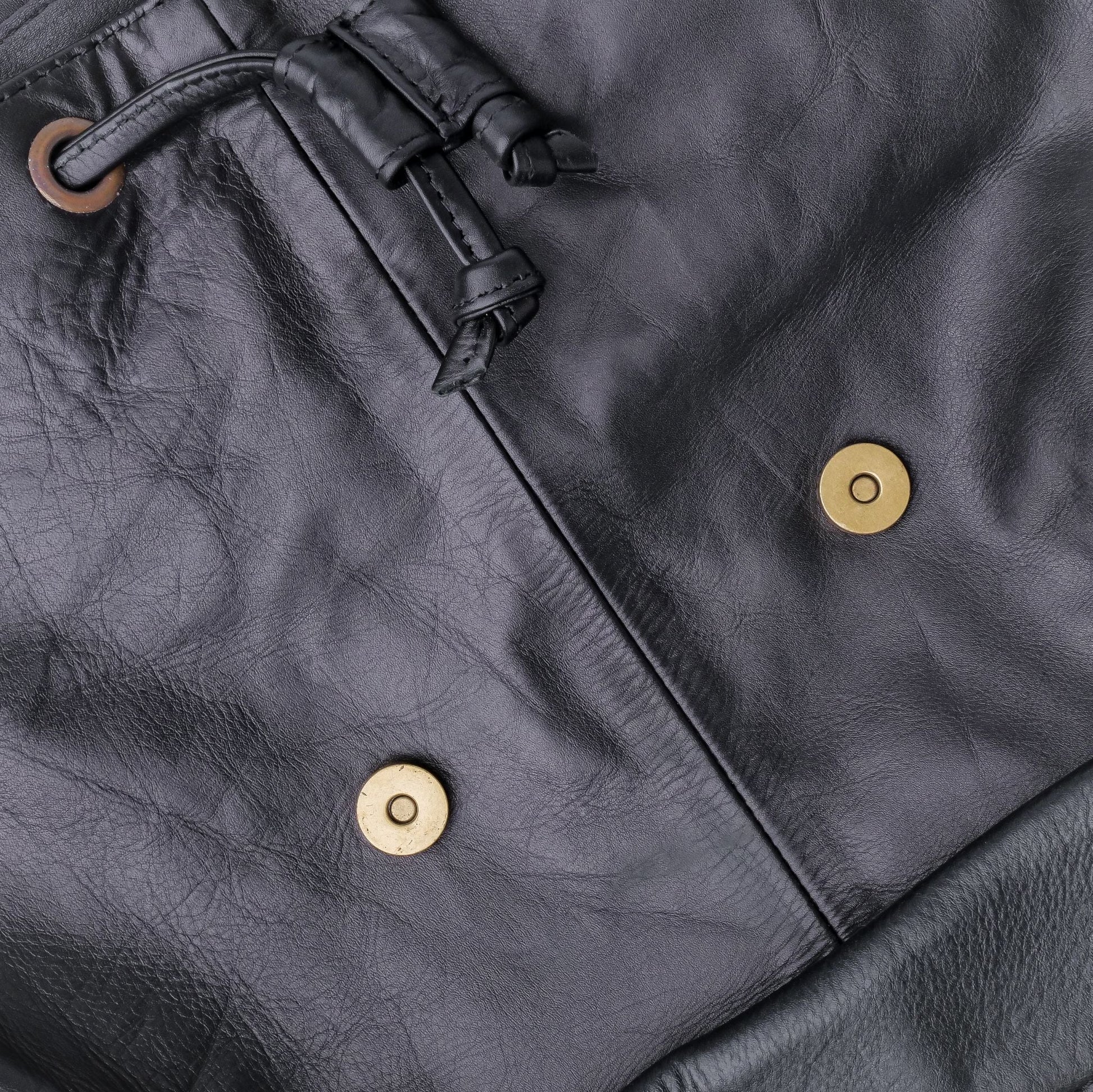 The spacious interior keeps your laptop and daily essentials organized, while double side zipper pockets provide quick access to smaller items. Designed with golden hardware, a leather drawstring, and double buckle strap closure, it ensures both security and timeless elegance. Carry it comfortably with adjustable shoulder straps or by the sturdy leather top handle.