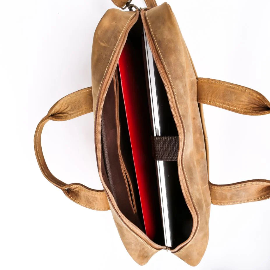 A timeless wood brown vintage leather briefcase that blends durability, function, and classic elegance.