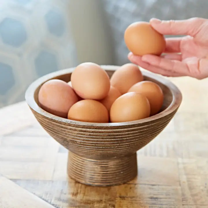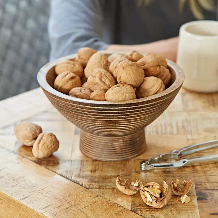 Handmade Carved Mango Wood Raised Bowl – Sustainable Pedestal Serving & Display Dish
