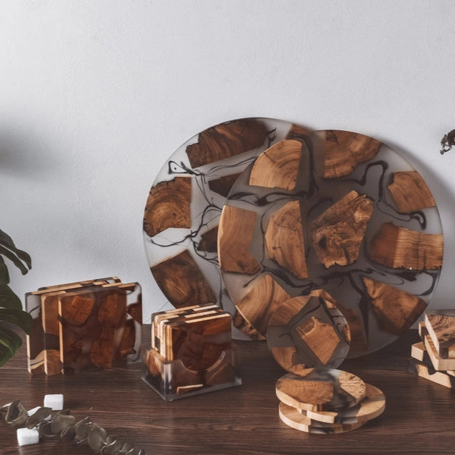 Bring timeless natural beauty to your tea table with our Handmade Cedar Wood Square Coaster/Placemat Set.