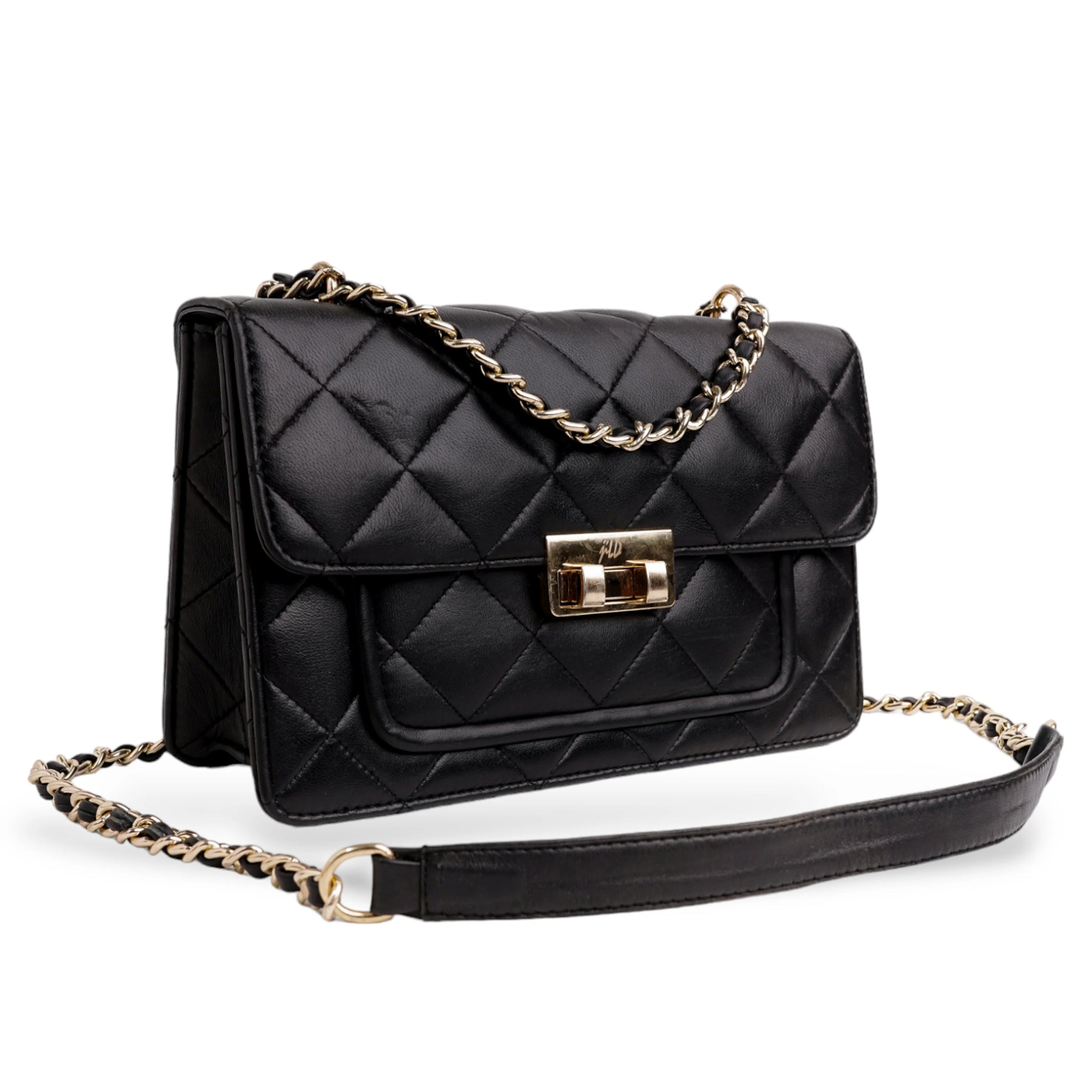 Meet the Flora Quilted Crossbody Leather Bag – a perfect blend of elegance and practicality. Crafted from 100% genuine leather, this mid-size bag features quilted texture detailing and a convertible chain strap that lets you wear it as a shoulder bag or a crossbody with ease.