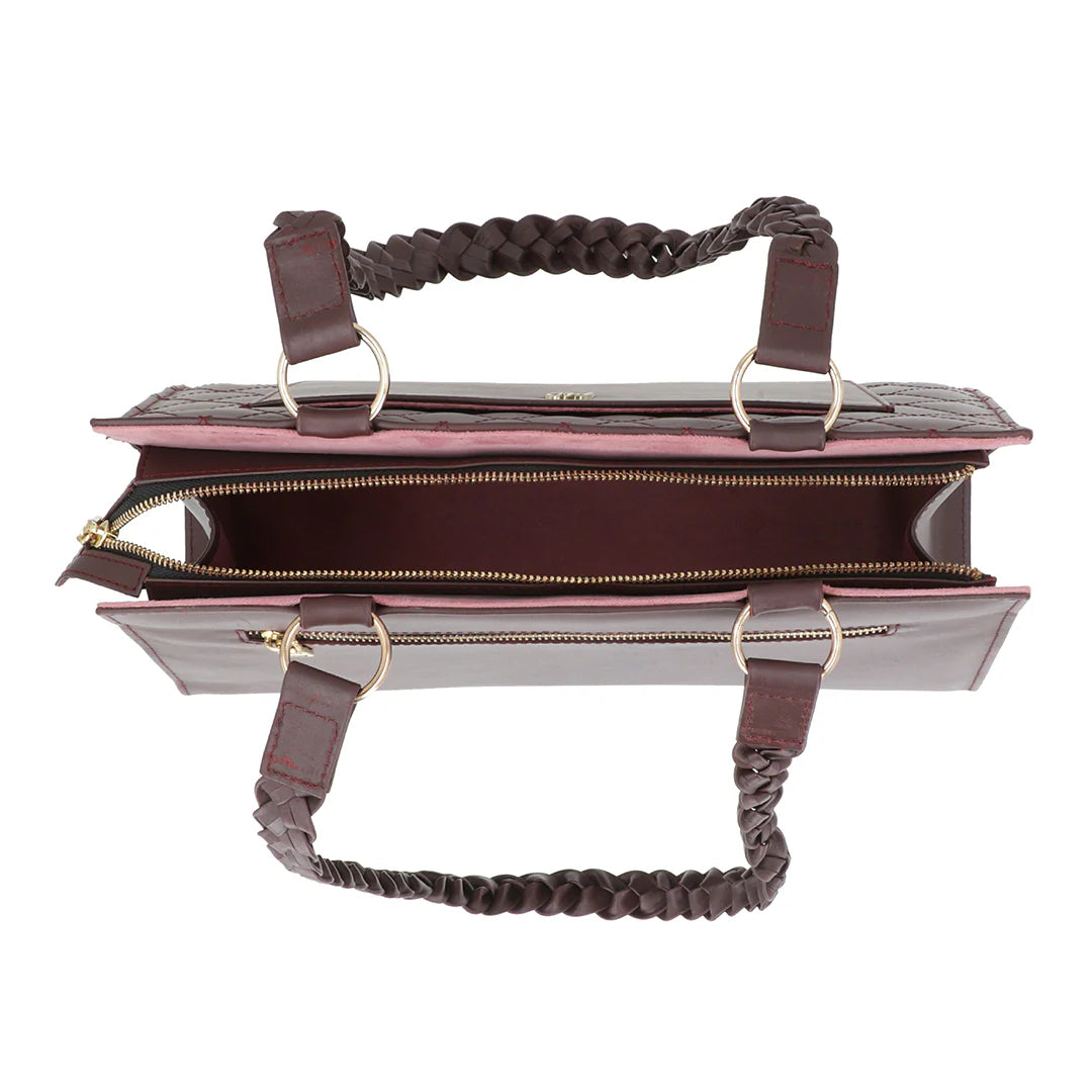 The spacious interior and thoughtfully designed zipper and slit pockets keep your essentials organized, while the top zipper closure ensures security. A sleek back zipper pocket adds convenience for quick access to small items.