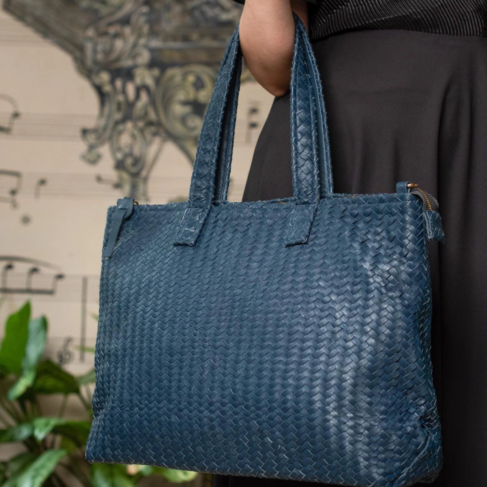 A premium woven leather tote bag that blends artisanal detail, durability, and everyday elegance.