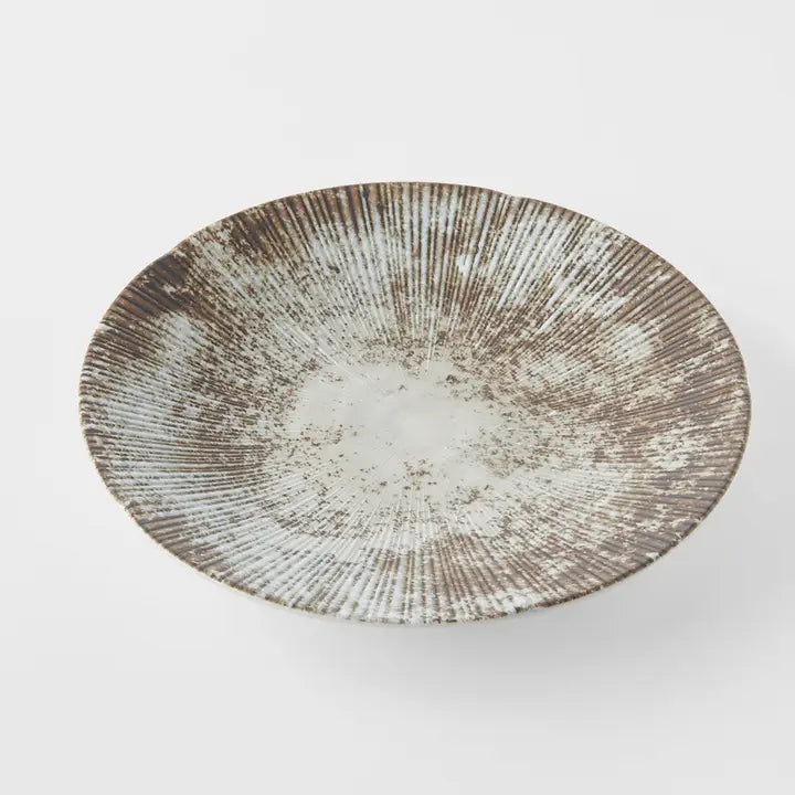 Features: Petal edge, embossed line pattern, earth tone + white glaze