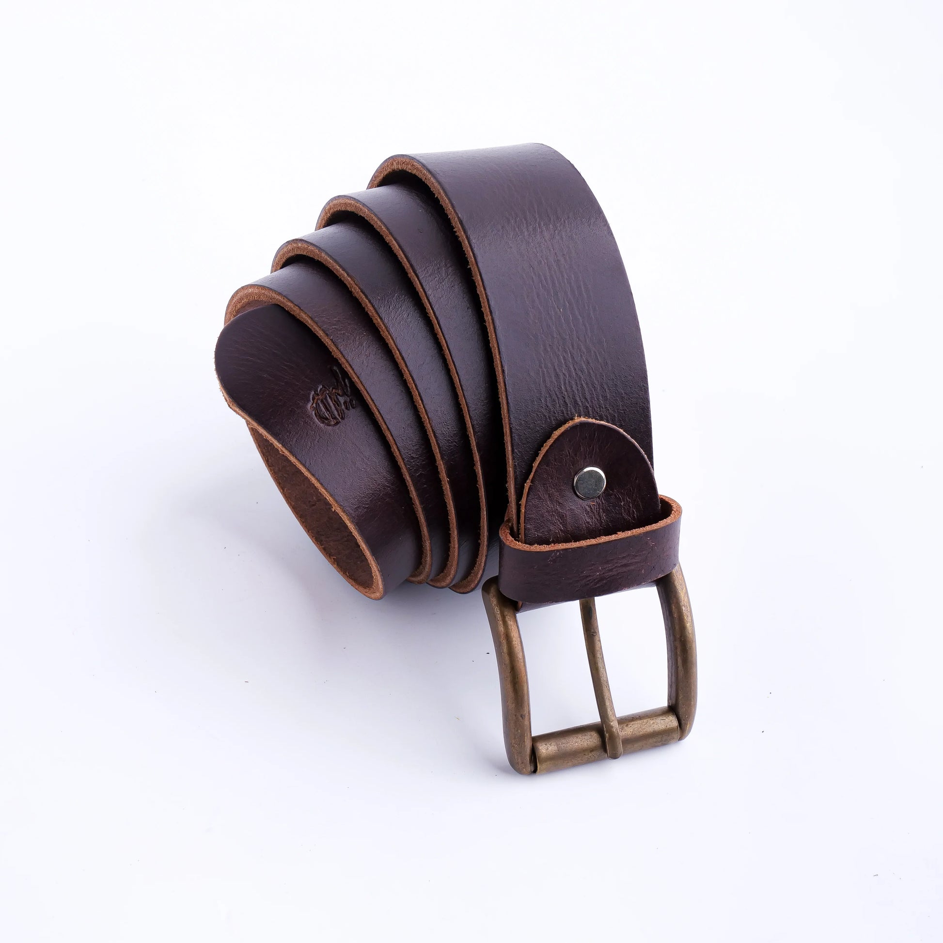 Leather Casual Jeans Belt for Men – Chocolate Brown 1.5" Width, Antique Brass B