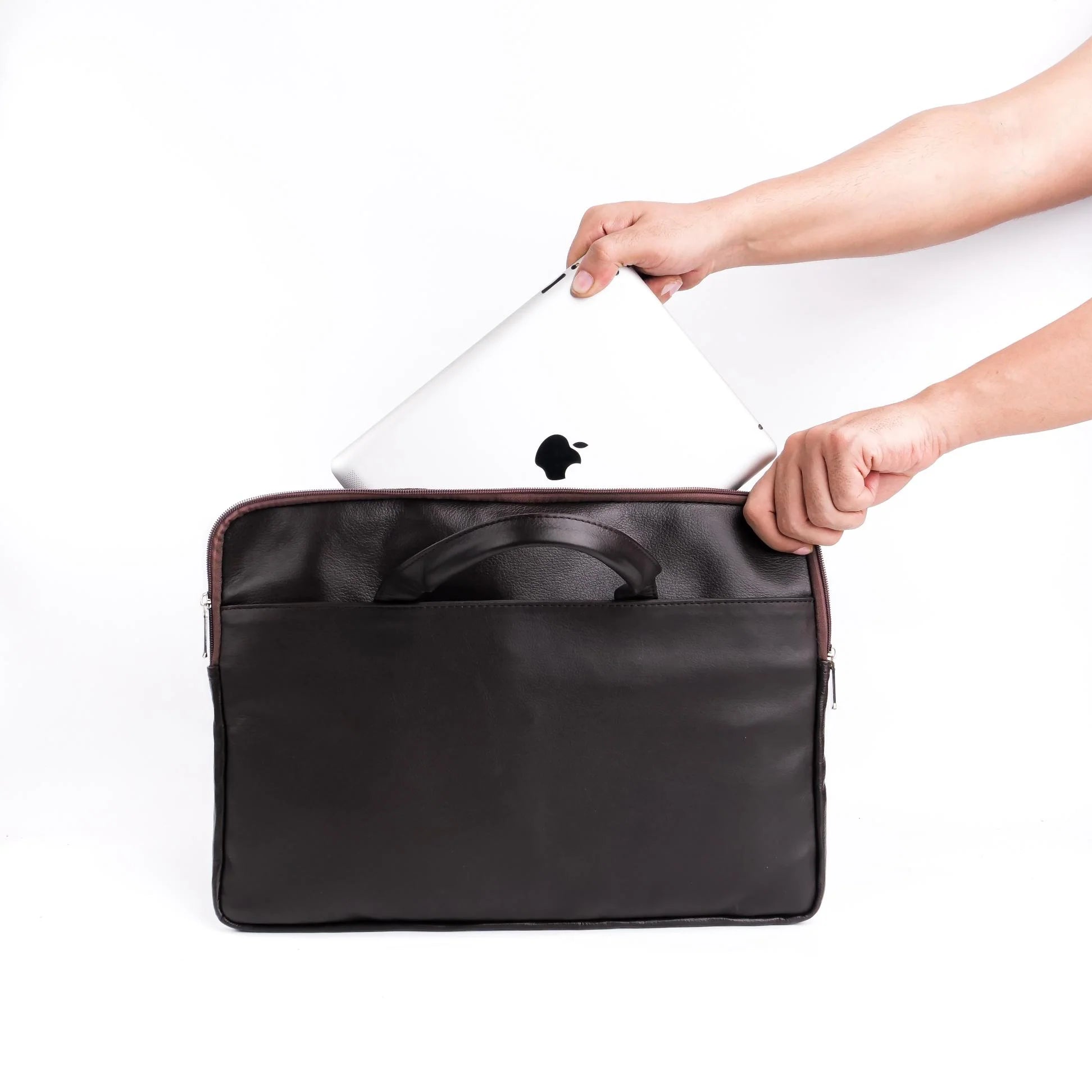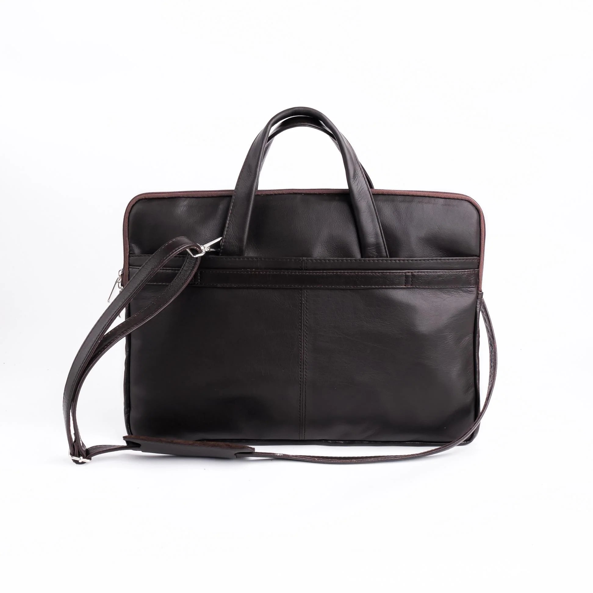 A sleek leather laptop bag that combines elegance, durability, and everyday practicality.