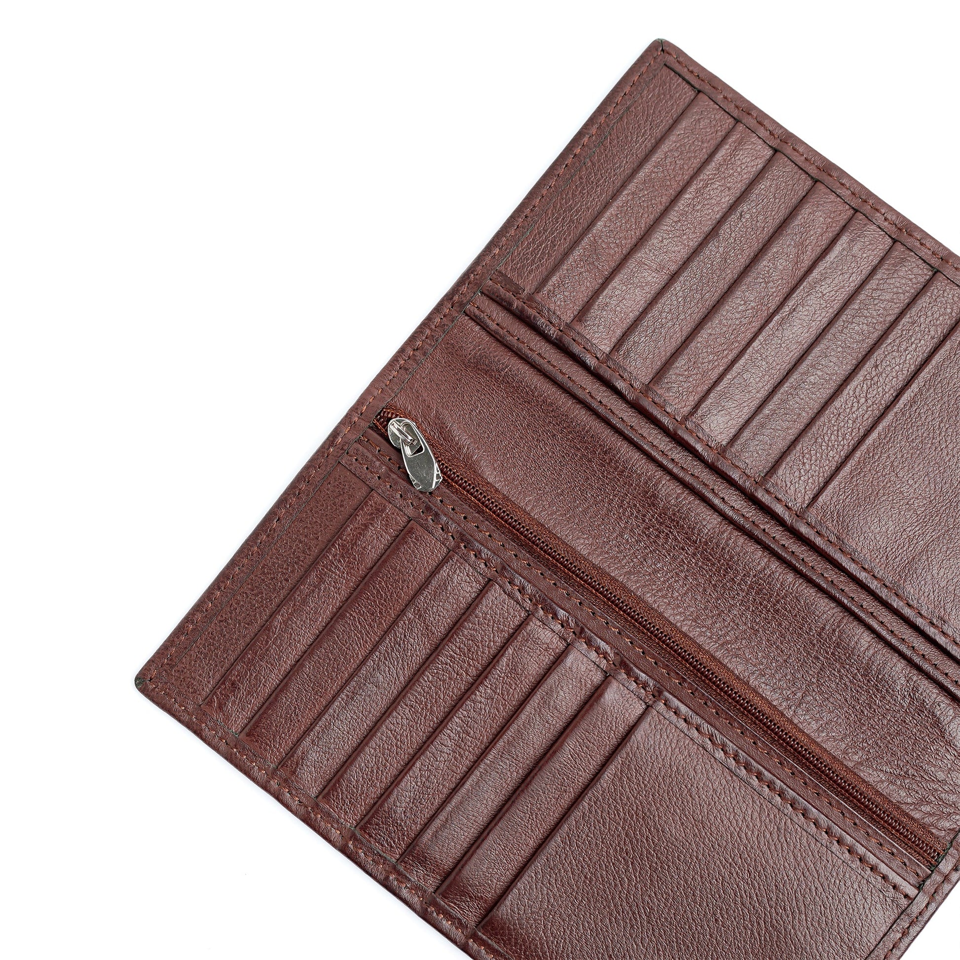 Men’s Leather Long Wallet – Vintage Brown | 18 Card Slots, Zipper Pocket & Passport Holder