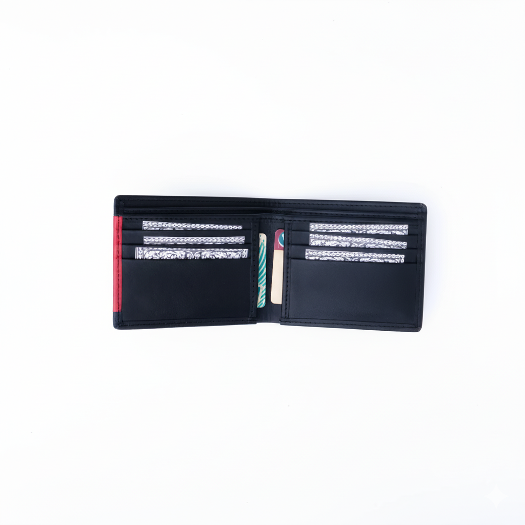 Upgrade your everyday carry with this stylish bifold men’s wallet, crafted from 100% premium pure leather. Featuring a bold red stripe accent, this wallet combines classic craftsmanship with a modern edge perfect for those who appreciate timeless elegance with a hint of personality.