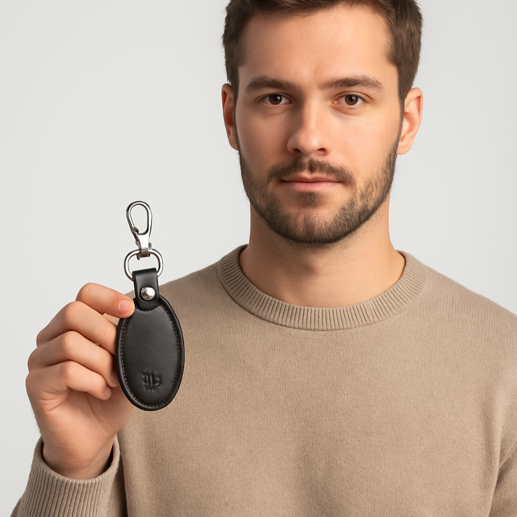 Each keychain is designed with a sleek silver key ring and a sturdy hook, allowing you to securely attach keys, fobs, or small accessories. The soft leather texture feels luxurious in hand, while the compact design ensures it slips easily into pockets, bags, or hangs neatly from belt loops. Whether used for house keys, car keys, or office keys, these keychains add a touch of sophistication to your everyday essentials.