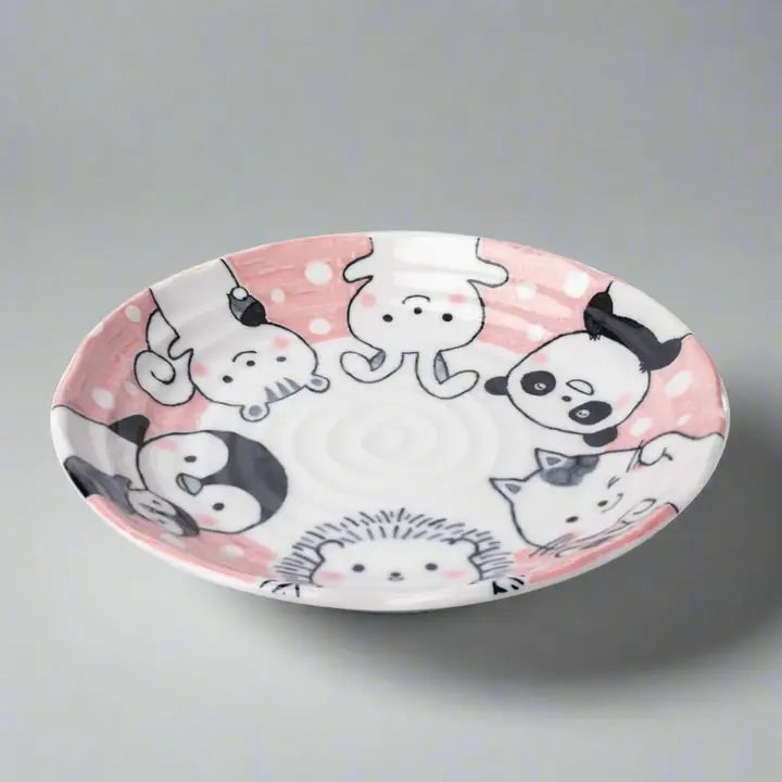 Add a playful charm to your dining experience with the Pink Glaze Ceramic Plate. Decorated with adorable animal illustrations on a soft pink polka dot background, this versatile 22.4 cm plate is perfect for serving appetizers, desserts, or snacks.