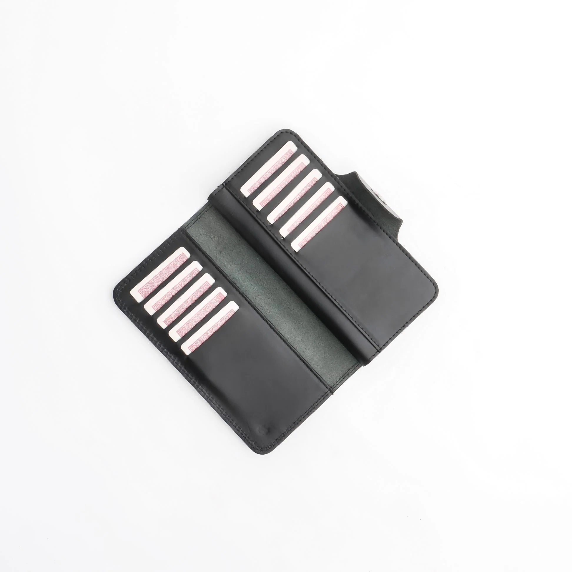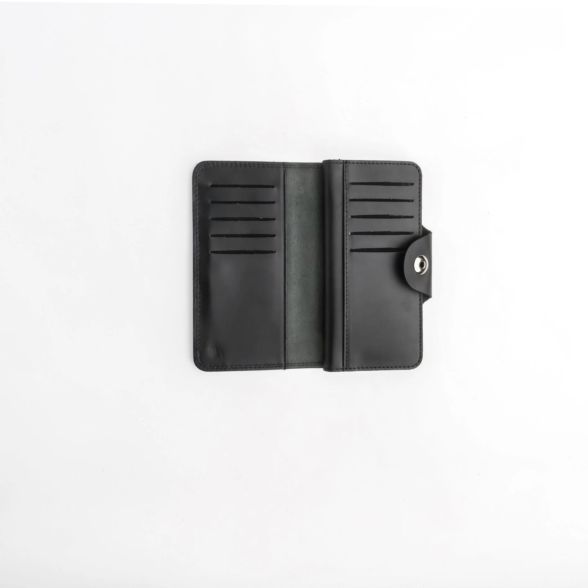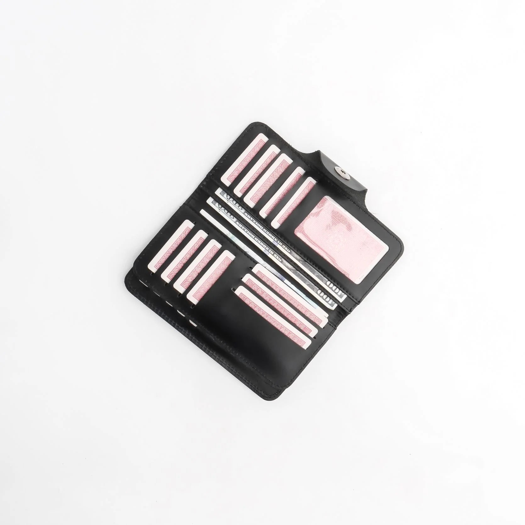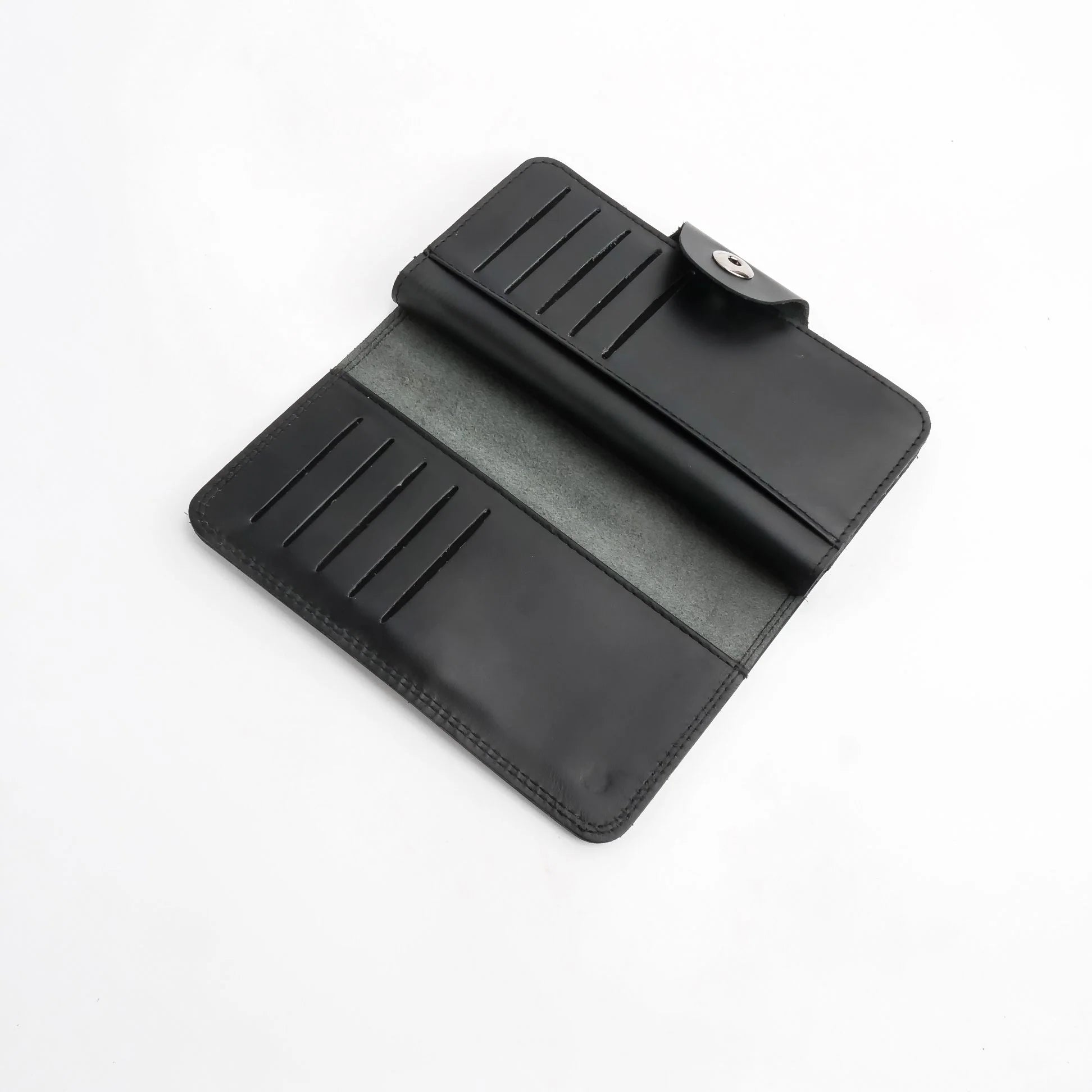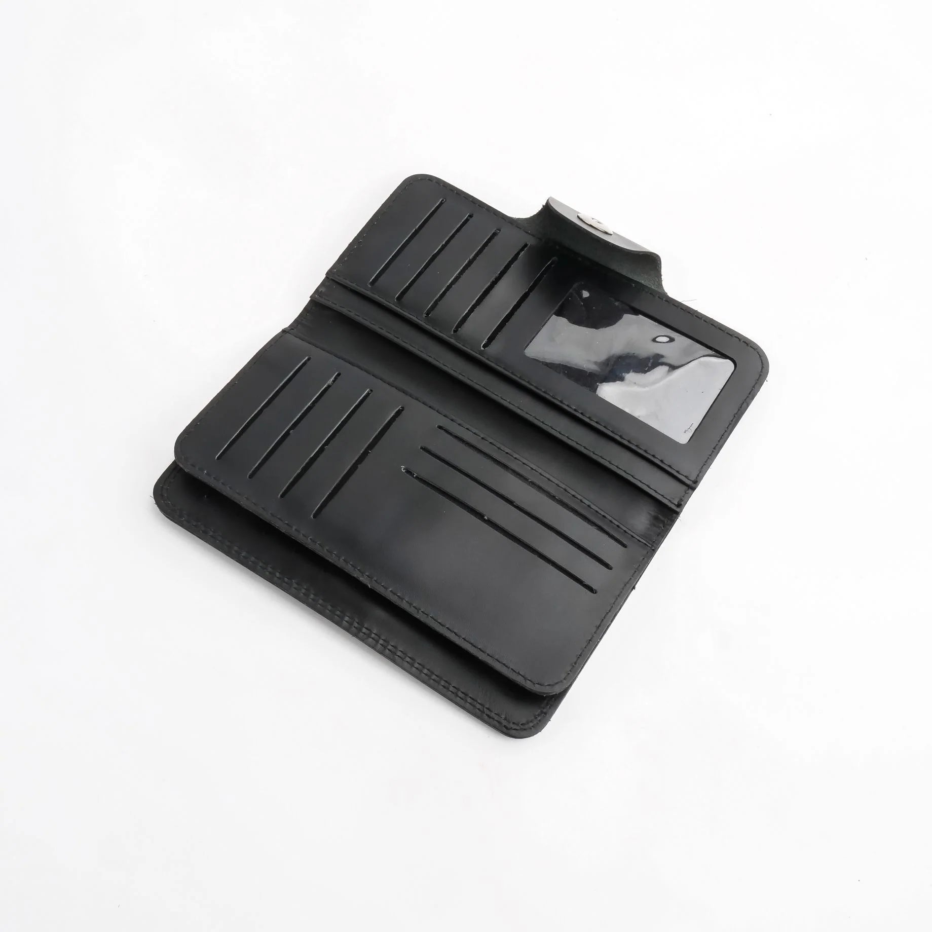 Pure Leather Long Wallet with Button Closure – Black 22 Card Slots & 6 Compartments